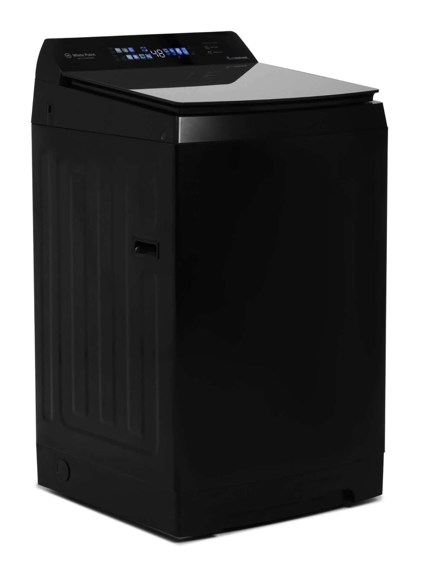 غسالة ملابس وايت بوينت فوق اتوماتيك 13 كيلو الشبح شاشة ديجيتال تاتش – حلة دياموند درام – باب زجاجي اسود هيدروليك – جسم صاج مجلفن ضد الصدأ باللون الاسود WPTL13DFGBMA